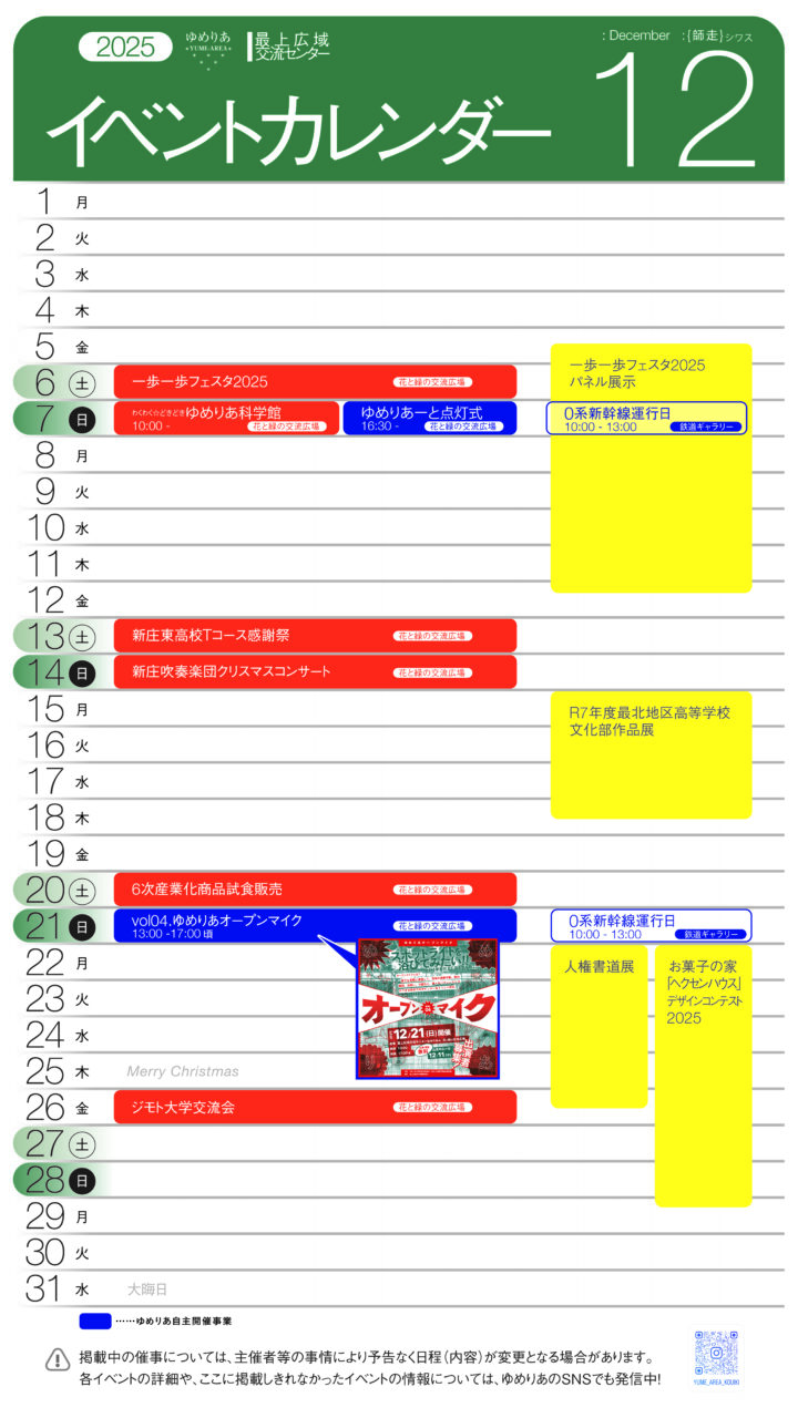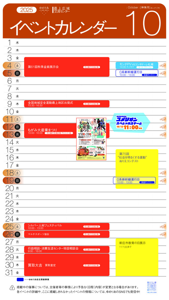 イベントカレンダーは交流広場入口、ゆめりあビションでもご覧いただけます!