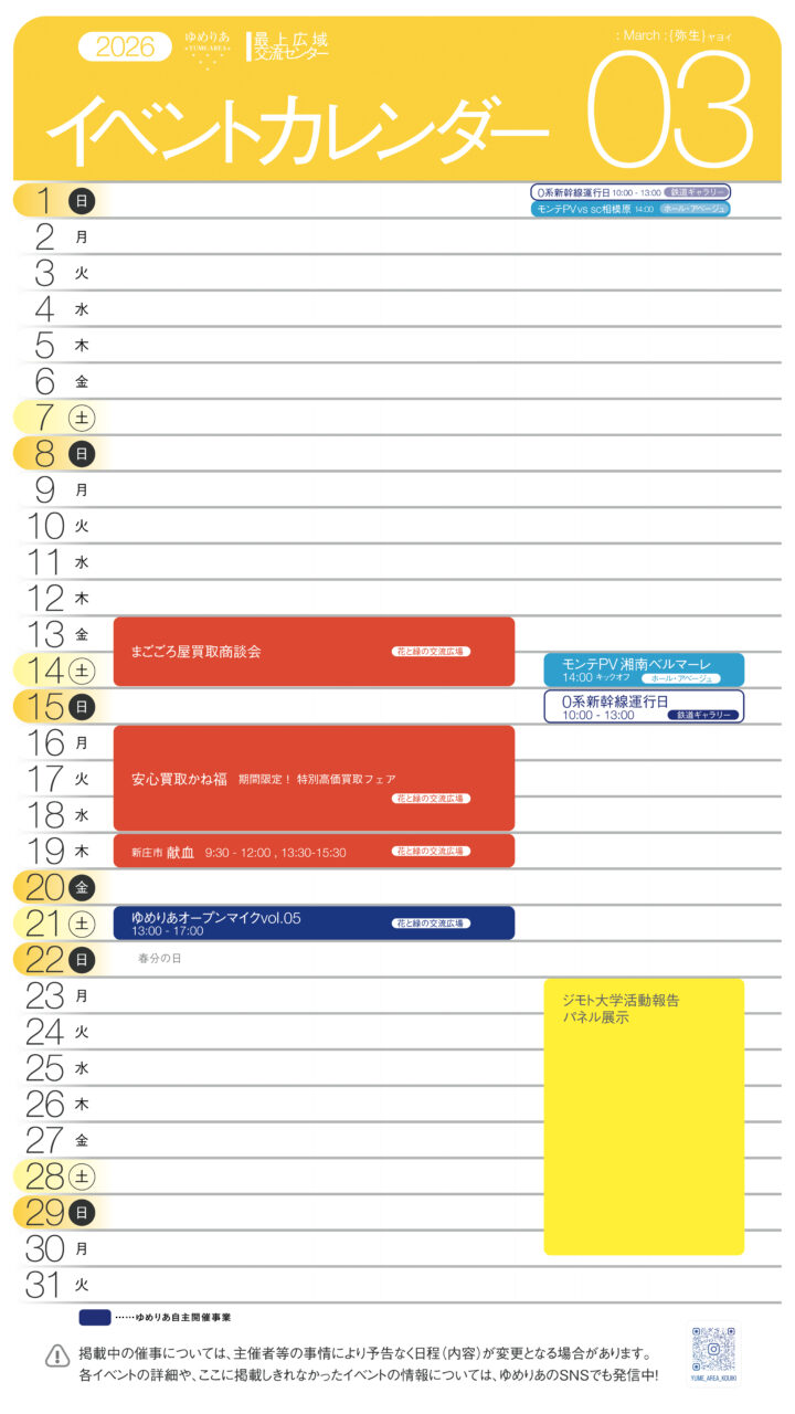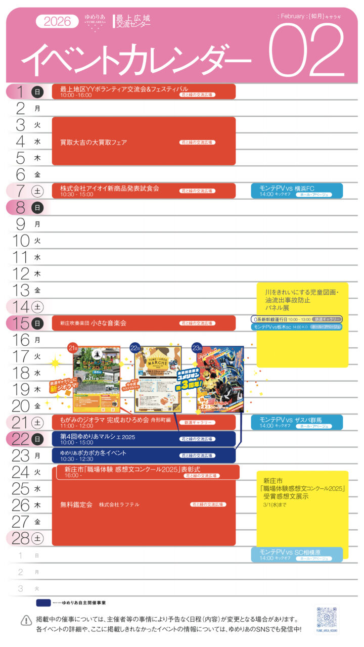 イベントカレンダーは交流広場入口、事務室前設置のゆめりあビションでもご覧いただけます!